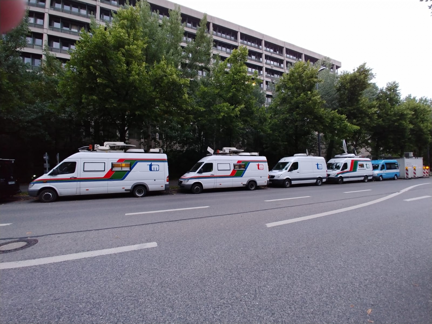 Ein denkwürdiger Tag. Der wohl längste Prozess in der deutschen Geschichte neigt sich dem Ende zu. Telemobil ist mit einer SNG mit 3 Kameras, 4 Schnittmobilen und einen Officemobil live davei.